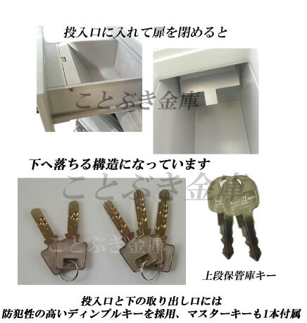 送料無料 P79E-3d 3段式 投入式耐火金庫 新品 テンキー式 ダイヤセーフDiamond Safeダイヤモンドセーフ 最上部にカギ付き収納庫を装備 業務用耐火金庫 投入庫 投入口(中段)と取出し口(下段)の内部構造で投入口から投入すると下段金庫部分に現金が移動します[代引き不可]