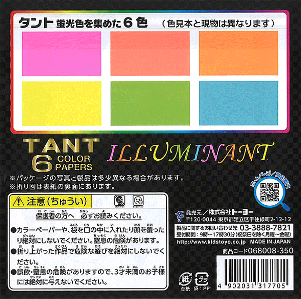 ◎タントおりがみ 15×15cm カラーペーパー イルミナント 068008 タント6カラーペーパー15cm 両面同色 6色×7枚 42枚入り TANT(タント) 折り紙 おり紙 オリガミ 折紙 Origami トーヨー メール便対応数:5冊まで